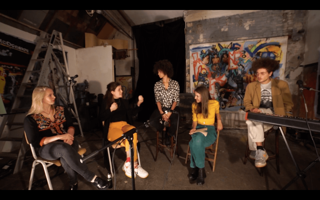 Above us hang flags with lyrics of heroes of the last century Bob Marley, Bob Bylan, Nina Simone, Nina Hagen – a celebration, a memoire – but today is not an ode to history. Who are the protest singers of 2021? In which way do they share their message? To answer these questions I invited protest singers Shishani, Benjamin Fro and punt.judith and filmmaker Julia Hollander for the live event of 3 x 3 = 9 in Vrijpaleis Amsterdam.