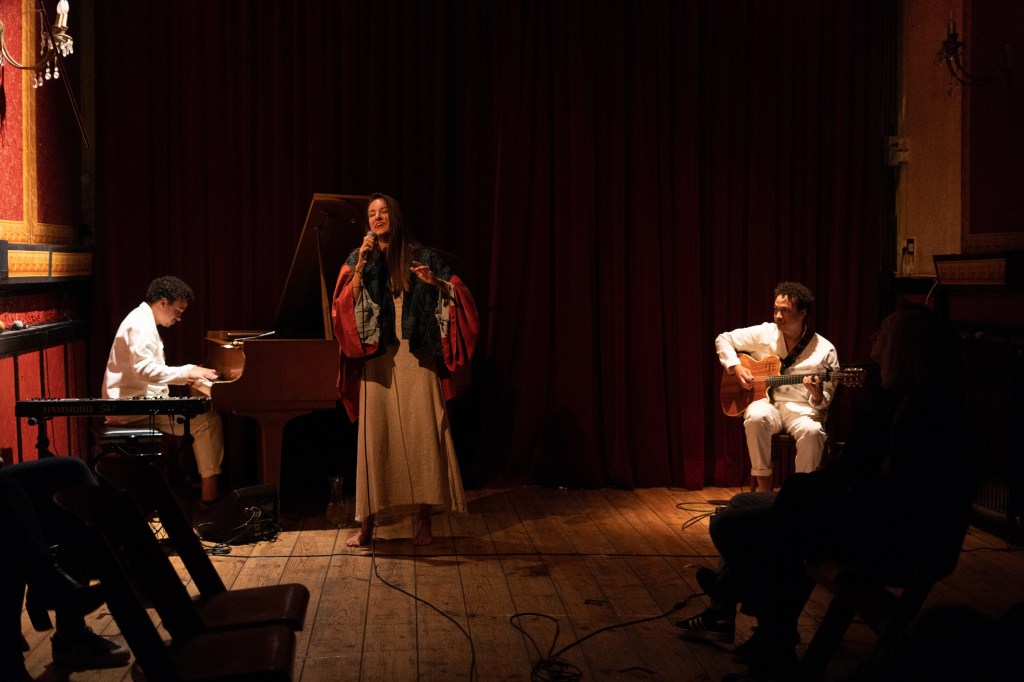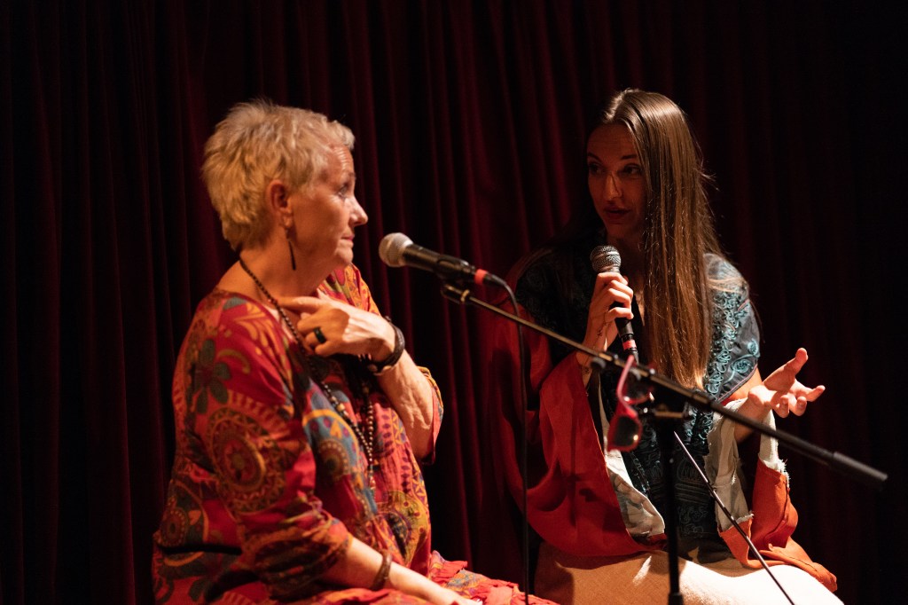 Aan een kant van de zaal zit psychosyntheticus Katrien van Haaster die ook in de podcast te horen is. Met haar gaan we in gesprek over het conflict tussen symbiose en autonomie in de liefde en in muziek.