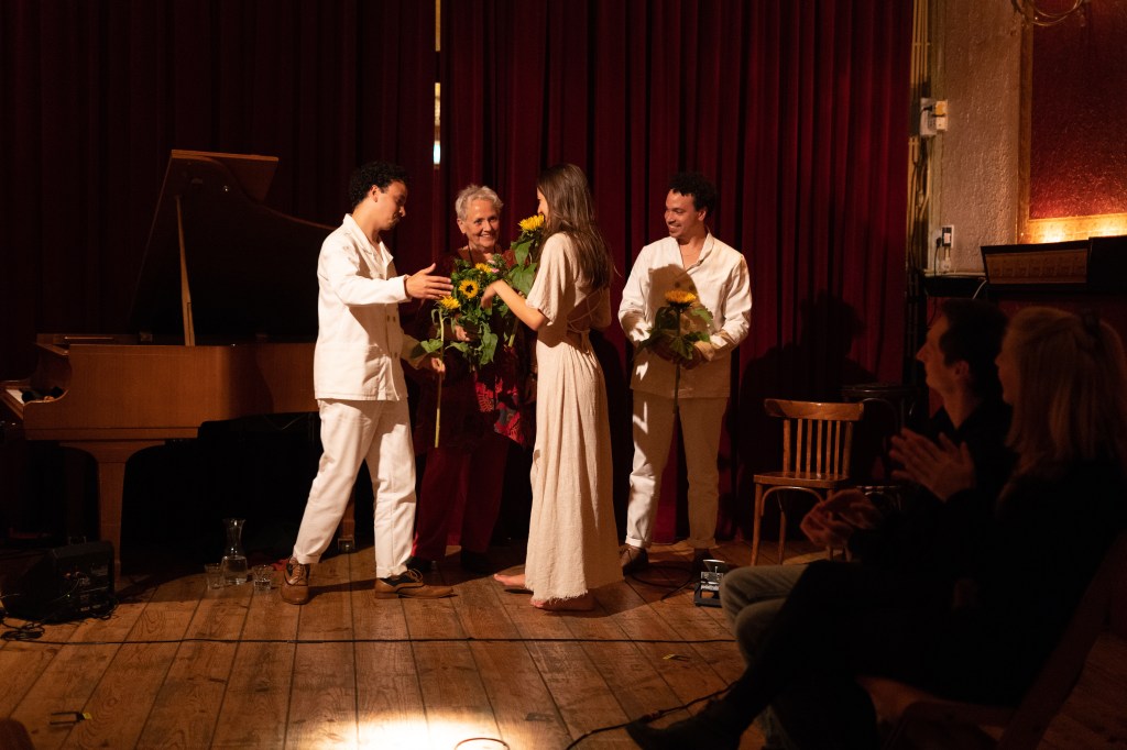 Het concert mondt uit in een improvisatie jam. Aaron, Thomas, Katrien, Milou en het publiek, iedereen is vrij om mee te musiceren en te dansen.
